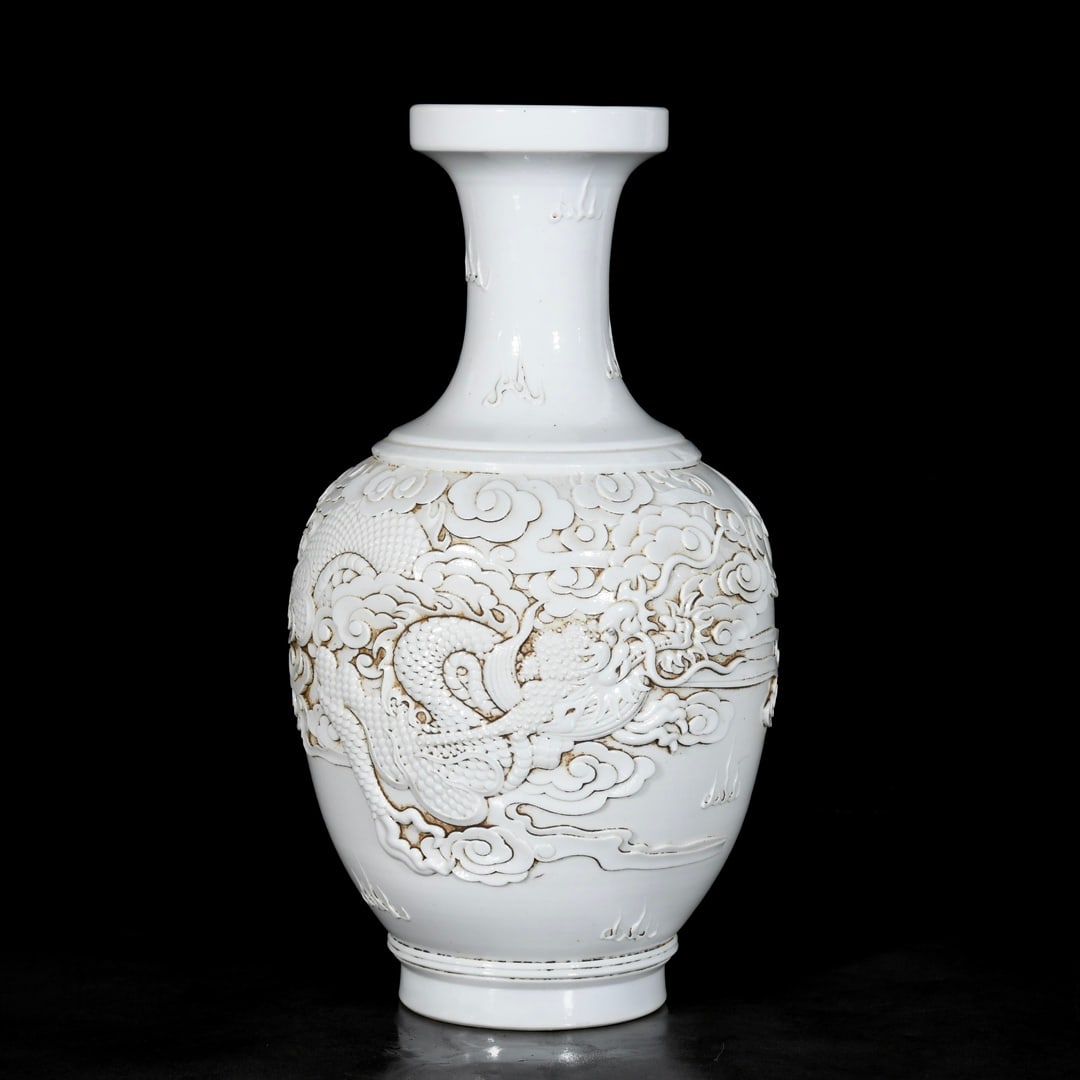 An Exquisite White Porcelain Auspicious Cloud and Dragon Pattern Vase