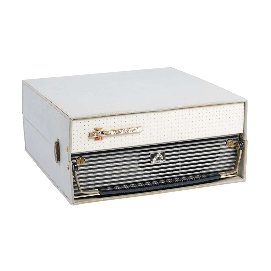 An HMV Monaco tabletop “suitcase” record players, 1966