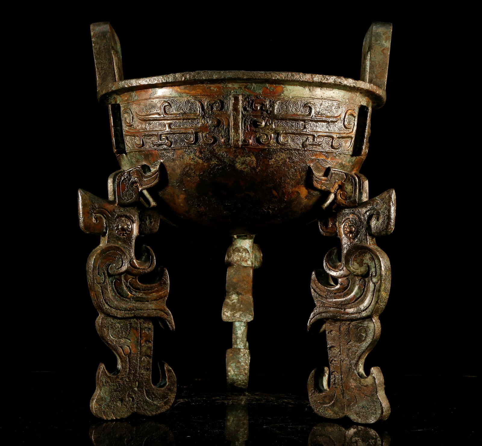 An Impressive Bronze Taotie-Pattern Tripod