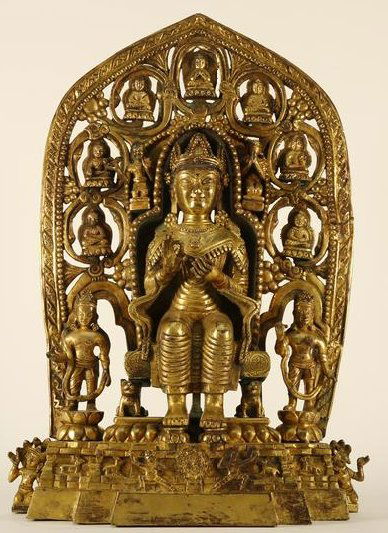 An Impressive Size Gilt Bronze Backscreen Buddha