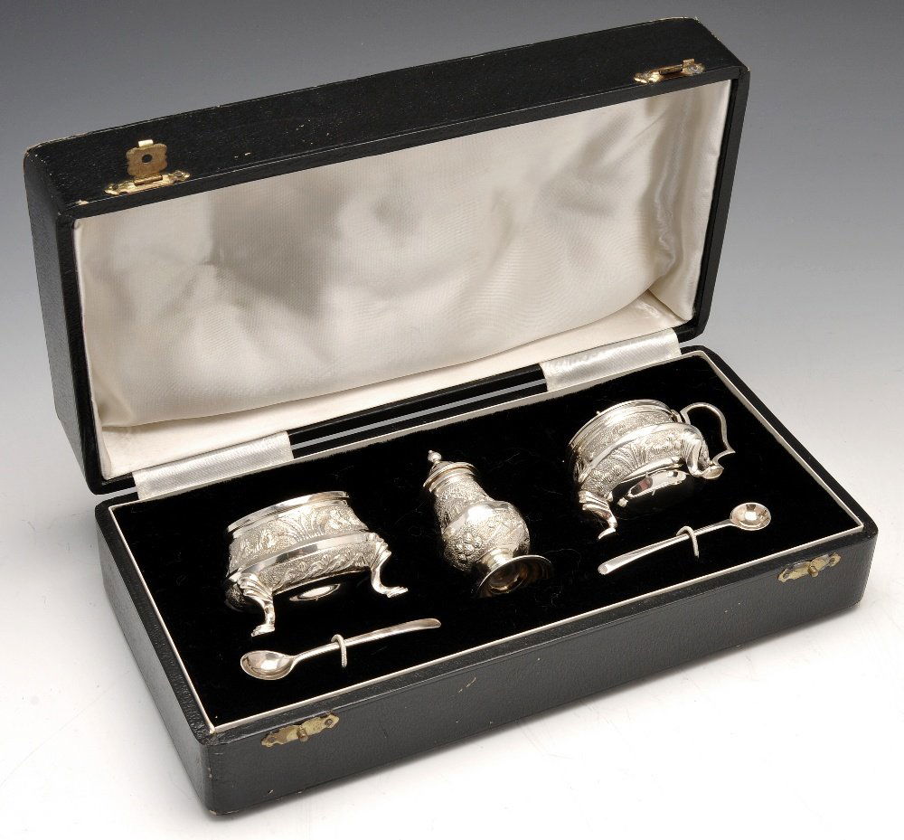 A composed lot of eight various antique French silver-plated CHRISTOFLE cutlery setsFeb 24, 2026ART NOUVEAU ENGLISH SILVER CONDIMENT SET, 388g6 hrs LeftY A CASED SILVER BACHELOR'S TRAVELLING FOUR PIECE TEA AND COFFEE SETFeb 17, 2026A cased silver-gilt and enamel writing set William Hornby, London 1912 with French control marksWWII TYPE NAZI GERMAN TEASPOONS F OFFICERS CANTEENFeb 14, 2026Portable Catholic Mass Kit (Fátima, Portugal)Mar 15, 2026South Bend Watch Co. Gold Filled Case Pocket Watches With Ornate Storage BoxFeb 15, 2026Larter & Sons Art Deco Platinum Gold Mother of Pearl Dress Set2 days LeftSILVER. Finest Quality English Silver Christening5 days LeftGorham Chantilly Flatware Sterling Silver Silverware 70 PiecesFeb 19, 2026Treasures from The Kremlin PhotographFeb 11, 2026A Collection of Six Patinated Metal Souvenir Spoons with Gilt Bowls in Fitted CaseMar 07, 2026A Cased Silvered Presentation Kukri KnifeFeb 15, 2026Mappin & Webb Sterling Silver Open Salts, Pepper Casters And A Mustard Pot On .800 Silver Tray (92 days LeftMarius Hammer Silver Cruet Suite1 day LeftA cased set of six silver and tortoiseshell place markers / menu holders J Batson & Son, London ...