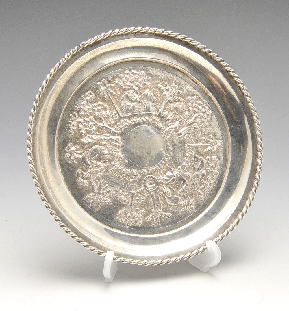 An Indian dish, embossed with a continuous circular