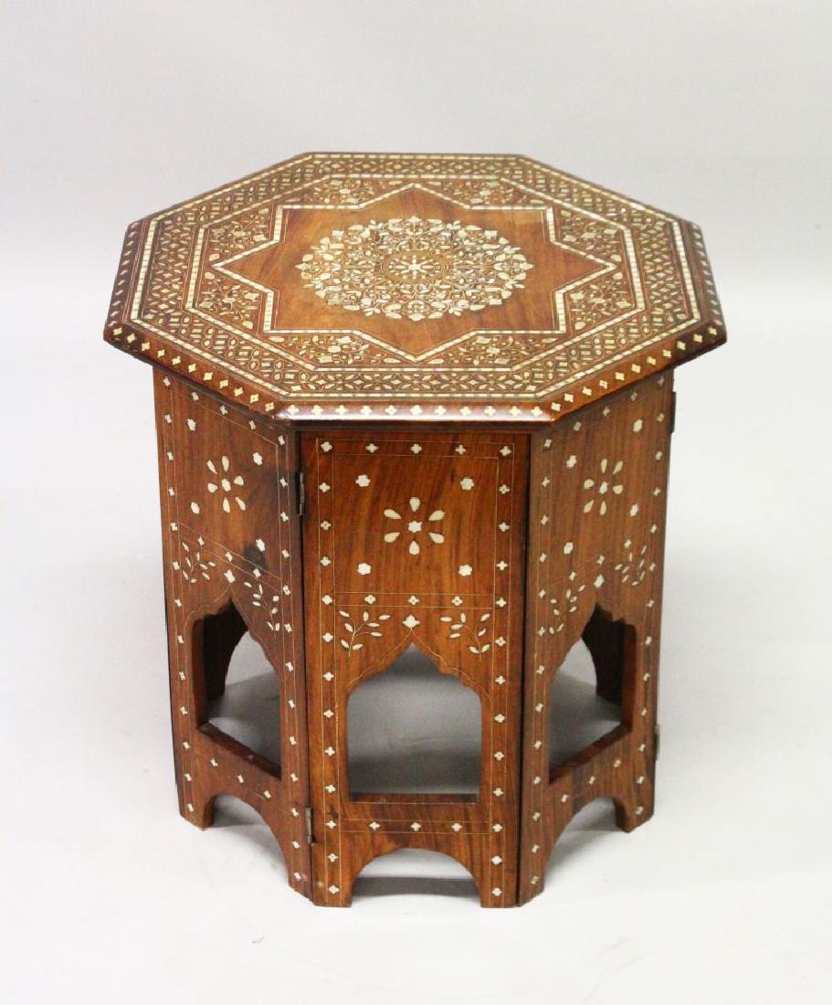 AN INDIAN OCTAGONAL SHAPED FOLDING TABLE, CIRCA 1900,