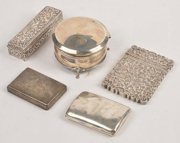 Lot of silver cutlery113 Lots AwayLot Of 4 Vintage Jewelry Boxes With Various Pieces Of Costume Jewelry / Accessories3 days LeftLot of sterling silver dresser accessories, including various covered glass jars and scent bottles.Mar 01, 2026GROUP LOT OF SILVER ITEMS7 days LeftMeriden, Imperial Silver & Others Assorted 9pc LOTFeb 26, 20265 ANTIQUE AND VINTAGE ST SILVER ASSORTED ITEMS4 days LeftSilver Cigarette Cases7 days LeftSilver Items, Various Origins7 days LeftSilver Items, Russia7 days LeftVarious Items7 days LeftGroup of Smoking & Other AccessoriesMar 03, 2026Silver Boxes, Various Origins7 days LeftSilver Buckle & Cigarette Case7 days LeftAntique lap desk, Chinese lacquer jewelry box, and more boxesFeb 26, 2026Collection of Antique Sterling Silver Objects and Accessories3 days LeftCollection of Silver Diminutive Covered Boxes, 5Feb 26, 2026