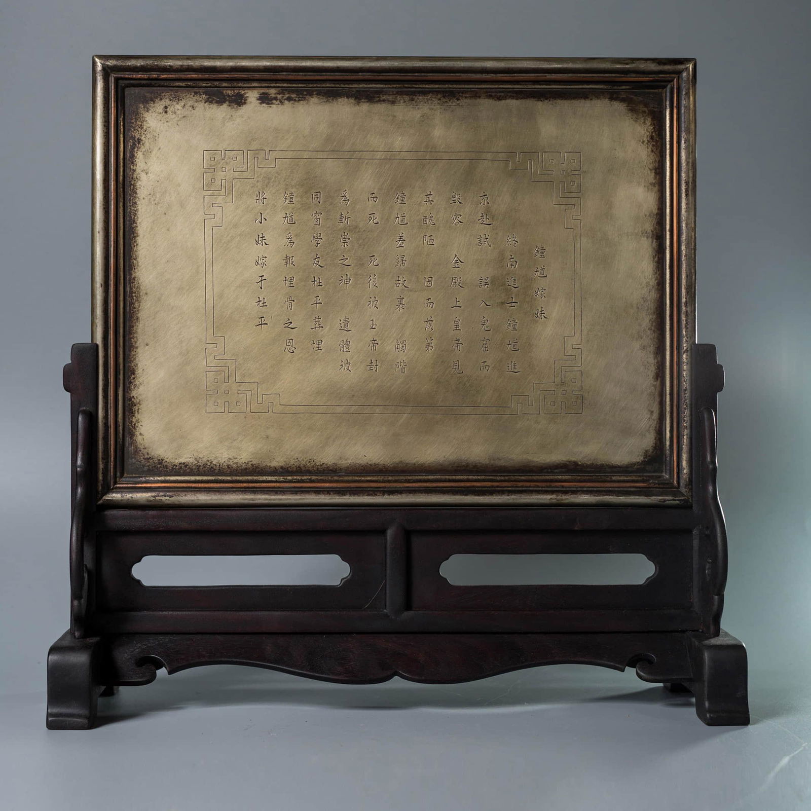 An Inscribed Bronze Table Screen