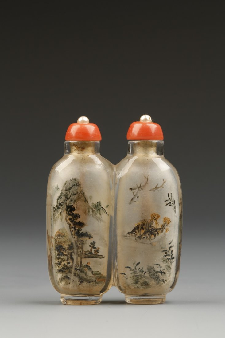 AN INSIDE-PAINTED ROCK CRYSTAL DOUBLE SNUFF BOTTLE deco