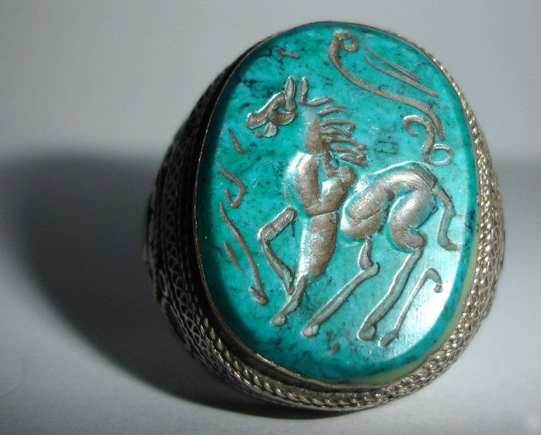 An ISLAMIC PERSIAN SILVER RING 19TH Century