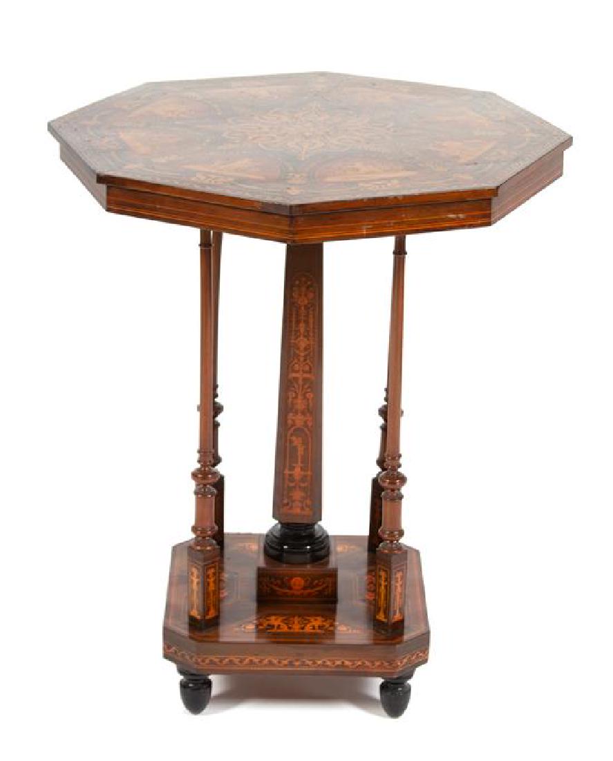 An Italian Marquetry and Penwork Octagonal Table Height