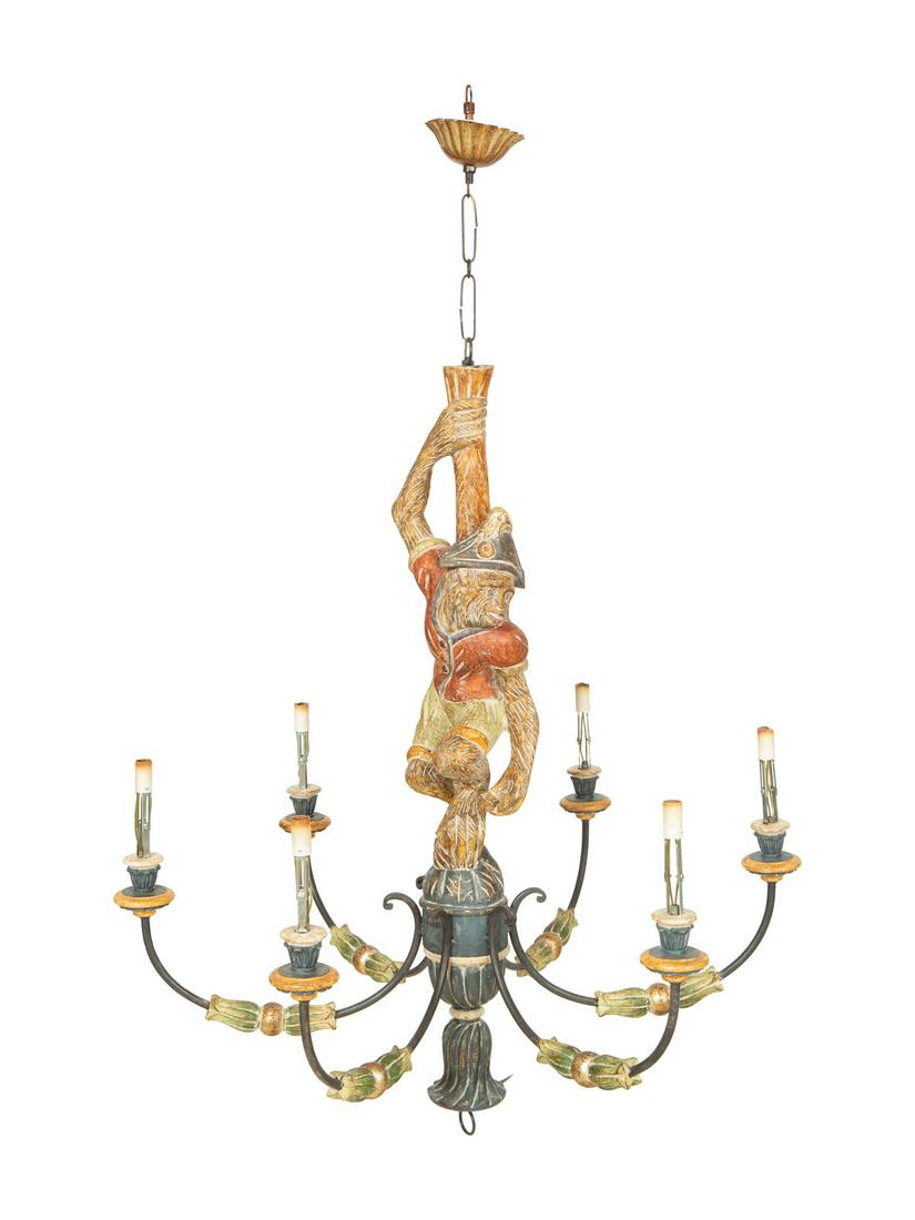 An Italian Painted Composition Six-Light Monkey Chandelier