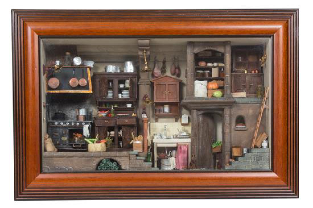An Italian Shadow Box Framed Miniature Kitchen Height