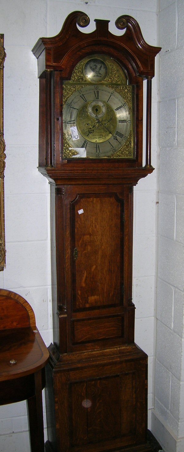 AN OAK AND MAHOGANY LONGCASE CLOCK