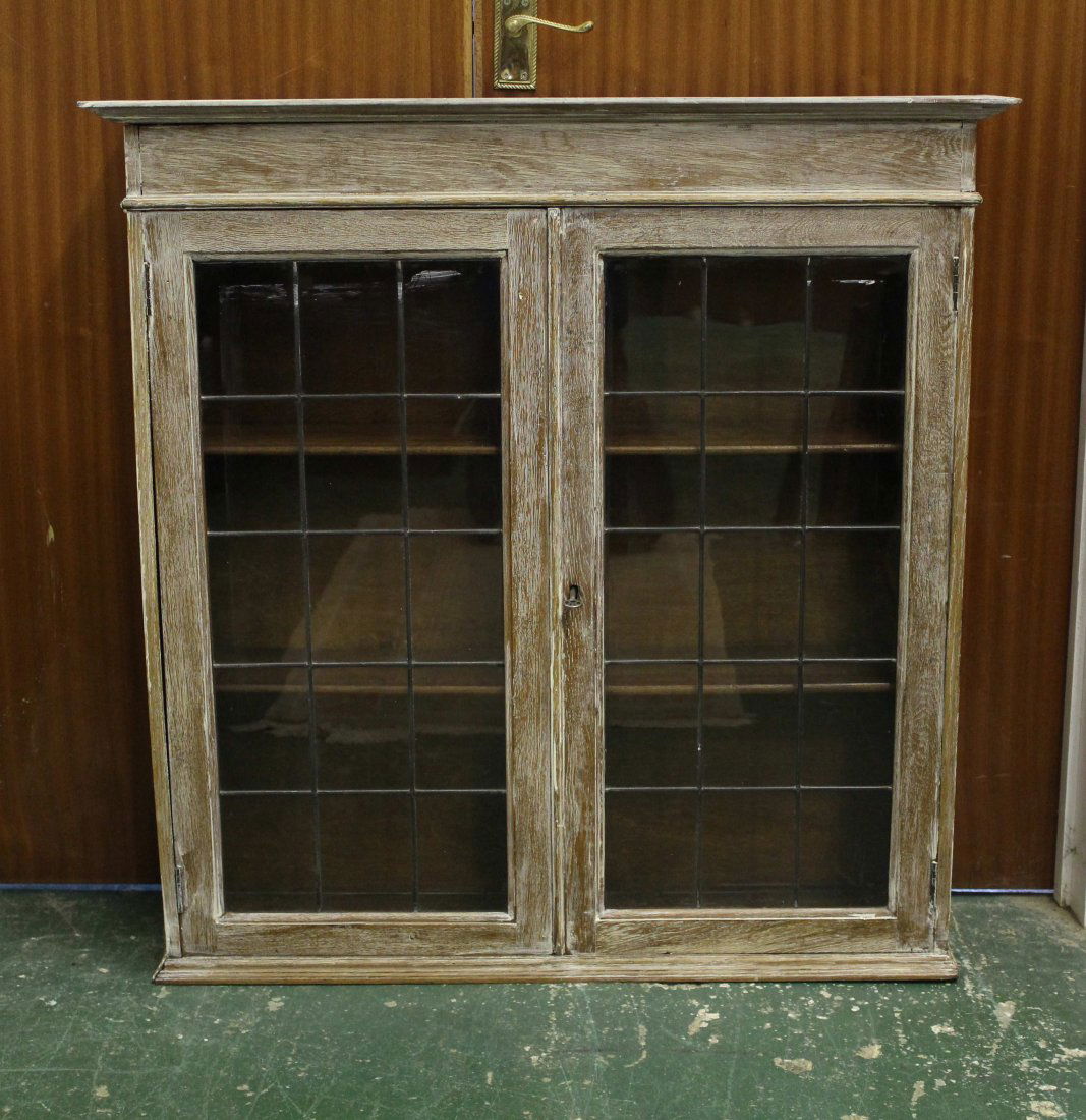 An oak display cabinet - limed and distressed - two