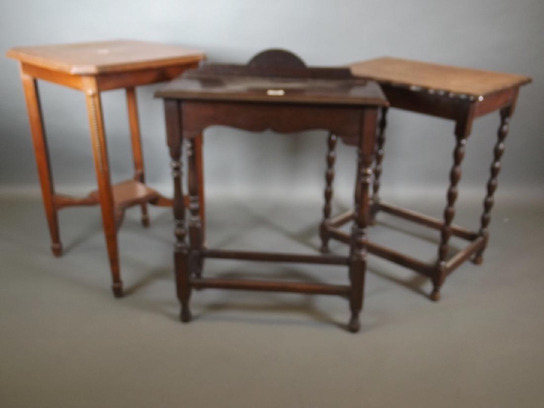 An oak two tier occasional table, another with shaped