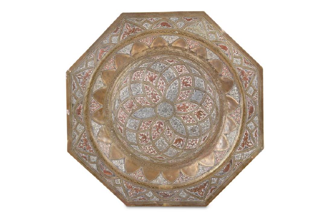 A MIDDLE EASTERN SILVER-INLAID BRASS DISH, EGYPT OR SYRIA, CIRCA 1900Mar 06, 2026An Ottoman hexagonal painted and giltwood ceiling panel, probably 19th century,6 days LeftJAPANESE SHIBAYAMA INLAID TRAY6 days LeftA LARGE ROUND ANTIQUE ZAND - QAJAR HAND-ENGRAVED BRASS TRAY, PERSIAN, 19TH CENTURYMar 06, 2026A Middle Eastern Geometric Marquetry Inlaid Wooden Tray3 days LeftOLD HANDCRAFTED METAL DECORATIVE PLATE LARGE SIZE CONVEX FORM REVERSE VINE BANDS ARABIC INSCRIPTIONMar 05, 2026A large vintage hand-engraved brass tray, likely of Middle Eastern or North African origin3 days LeftA large vintage Middle Eastern or Indian hand-engraved copper or brass tray.3 days LeftCARVED AND INLAID WOOD TRIANGULAR THREE HANDLED VICTORIAN TRAY3 days LeftVintage Antique Decorative Middle Eastern Copper TrayFeb 26, 2026Arts and Crafts Copper Salver with Abalone Shell Inlay by Joseph Heinrichs4 days LeftVintage Antique Decorative Middle Eastern Copper Charger TrayFeb 26, 2026Moroccan Mosaic MedallionFeb 27, 2026Moser Style Hand Enameled Saucer Undertray4 days LeftA copper gilt phoenix pattern appreciation plate from the Tang DynastyMar 14, 2026Vintage Antique Decorative Middle Eastern Brass Charger TrayFeb 26, 2026