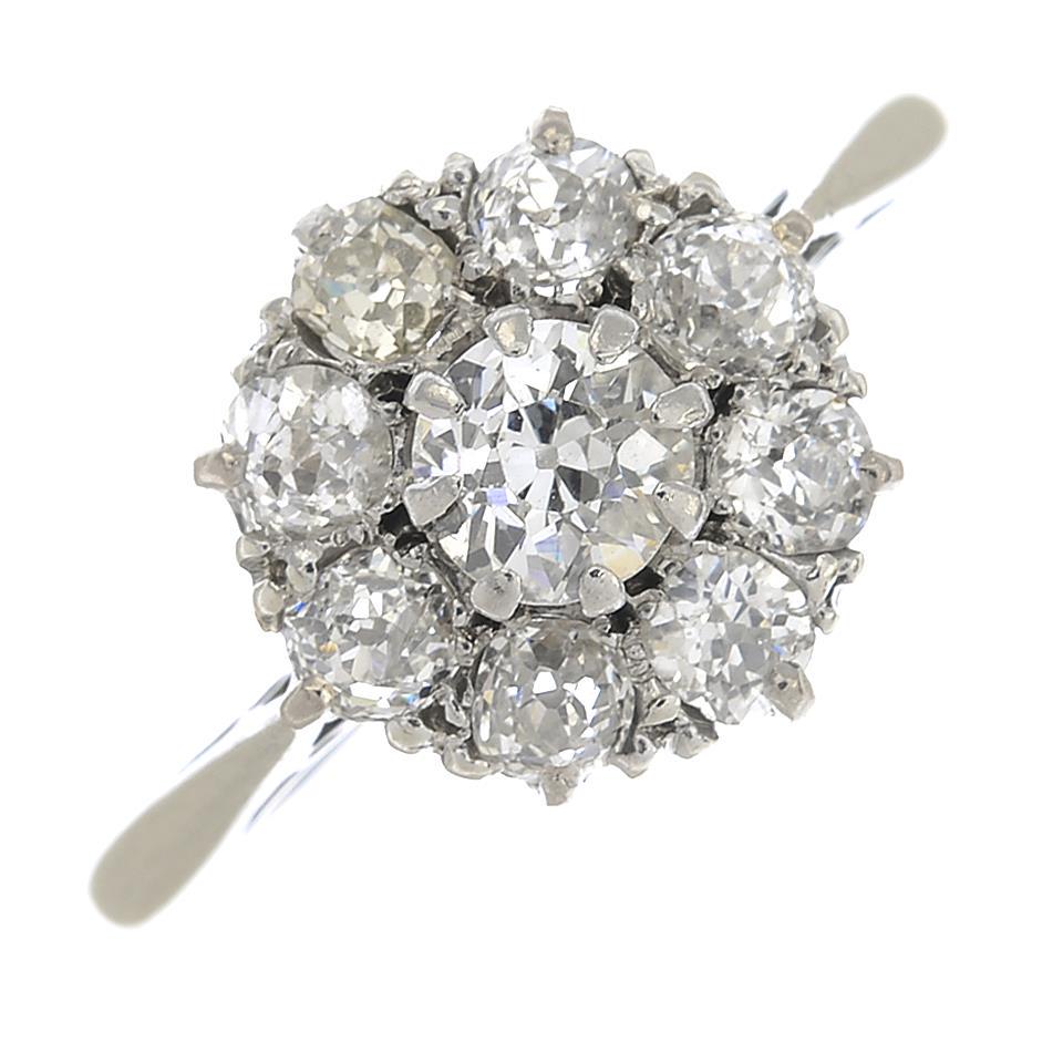 An old-cut diamond cluster ring.Estimated total diamond