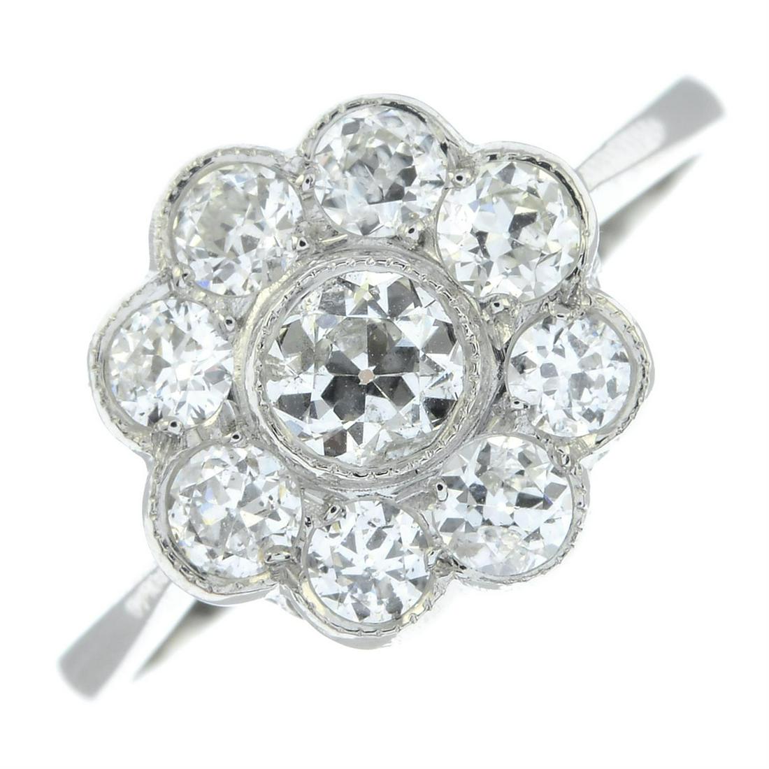 An old-cut diamond floral cluster ring.