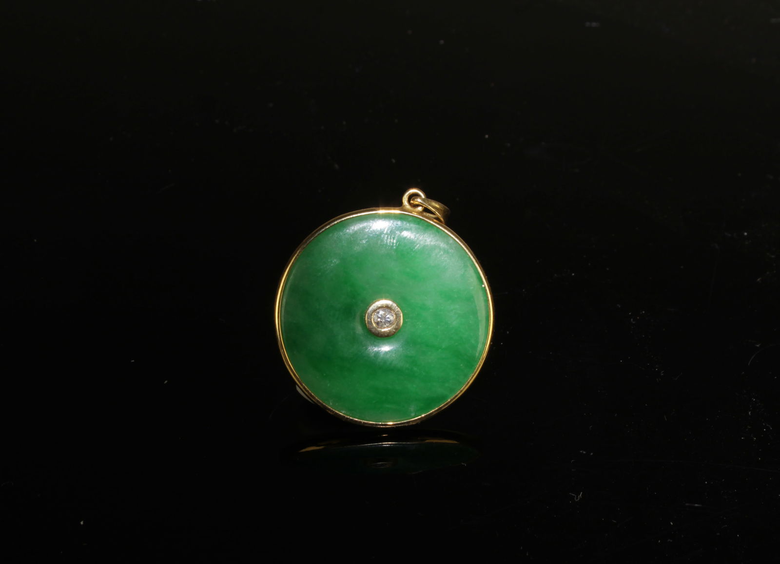 Diamond/Jadeite Jade Grade A Pendant 8.38Ct 14k Y/g