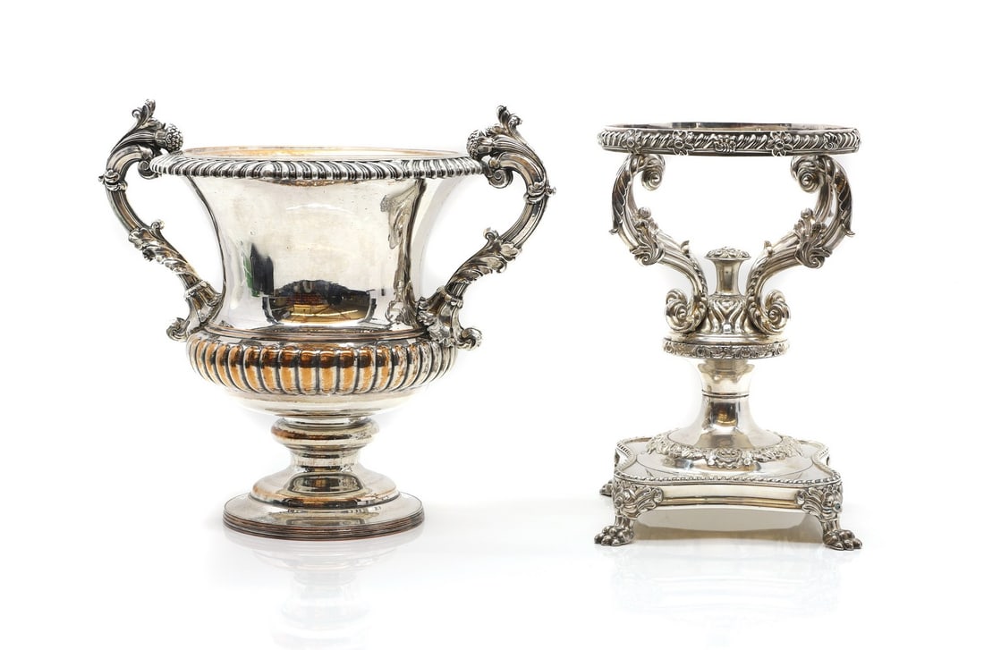 Lot of 2 Wallace Sterling Silver Items & Another2 days LeftA composed lot of four religious silver and silver-plated brass church objectsFeb 24, 2026(2) Large antique English sterling trophies3 days LeftA pair of Old Sheffield Plate wine coolers apparently unmarked, circa 1830'sPair Old Sheffield Plate Matthew Bolton Wine CoolersFeb 24, 2026(2) English silver Rangoon sports trophies3 days LeftA pair of Sheffield silver plated footed wine coolersMar 03, 2026Gorham Plymouth sterling silver partial tea/coffee service, 3pc: lidded sugar bowl, creamer, waste5 days LeftTwo Champagne Buckets, (One Brass & One Silverplated)7 hrs LeftAmerican Silverplate Hot Water Urn & BowlMar 07, 2026Eight Sterling Silver Miniature Urn From Cups5 days Left2 S. Kirk & Son Sterling Bowls & J S Macdonald VaseFeb 26, 2026A PAIR OF GEORGE III SILVER SAUCE TUREENS AND COVERS1 day LeftSterling Silver Classic Urn ToothPick Holders-Pair of 2 --3.75 Dwt.ANTIQUE SILVER PLATED VASE DANISH SILVER COMPANYMar 01, 20264 Sterling Repousse Table Articles including KirkFeb 26, 2026