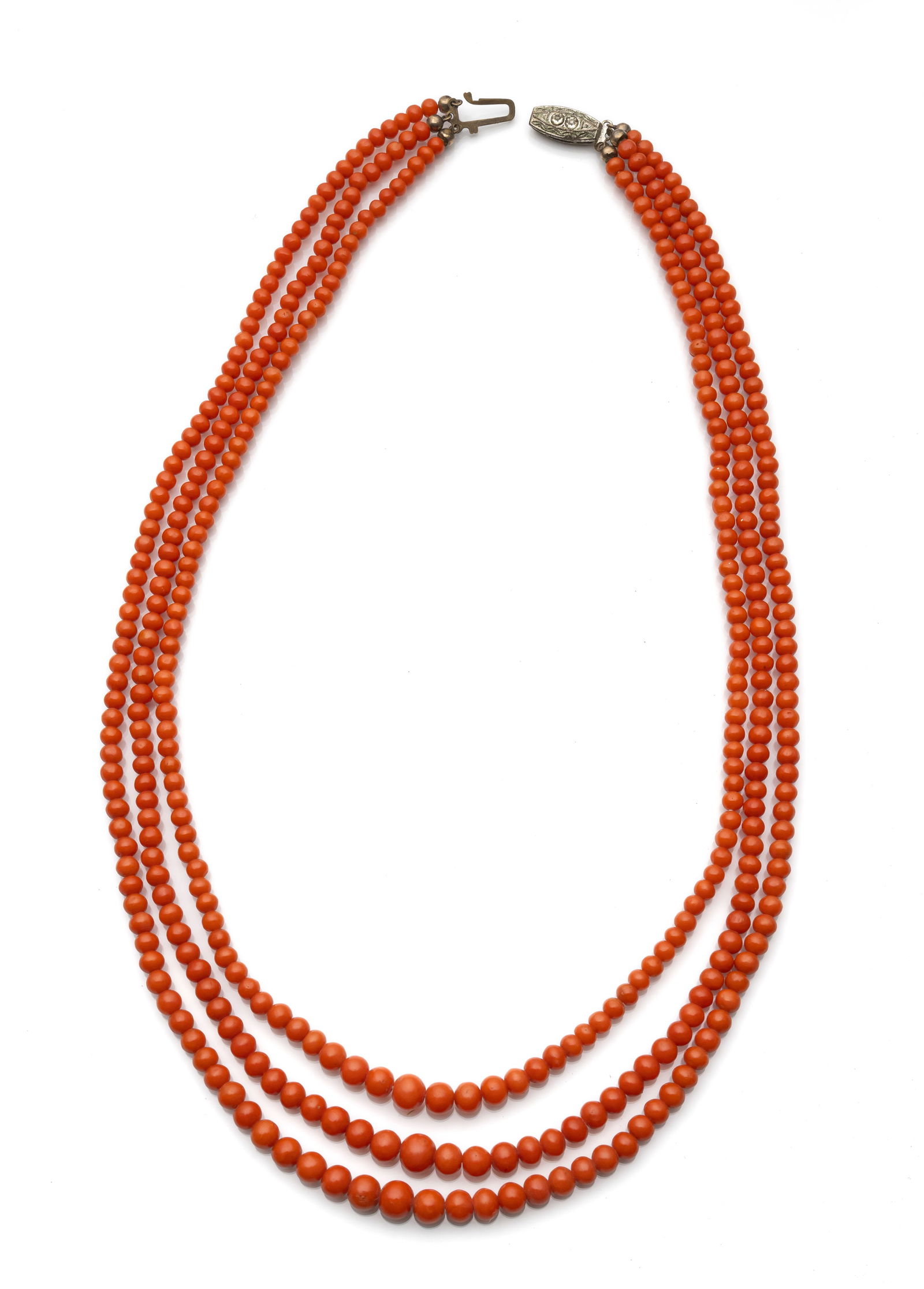 AN OLD THREE ROW CORAL NECKLACE