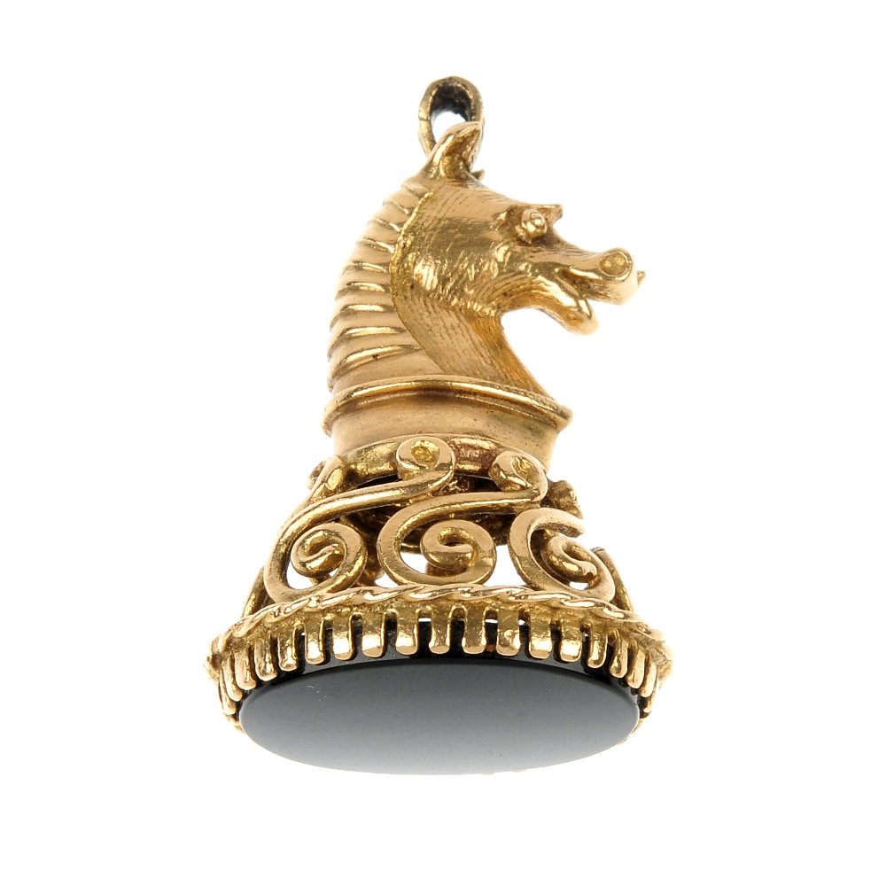 VAN CLEEF & ARPELS, AN EXQUISITE ART DECO ONYX AND DIAMOND FOB WATCH PENDANT NECKLACE, EARLY 20TH...VAN CLEEF & ARPELS, AN EXQUISITE ART DECO ONYX AND DIAMOND FOB WATCH PENDANT NECKLACE, EARLY 20TH CENTURY in platinum, the hexagonal face with stylised Arabic numerals, within a border of rose cut