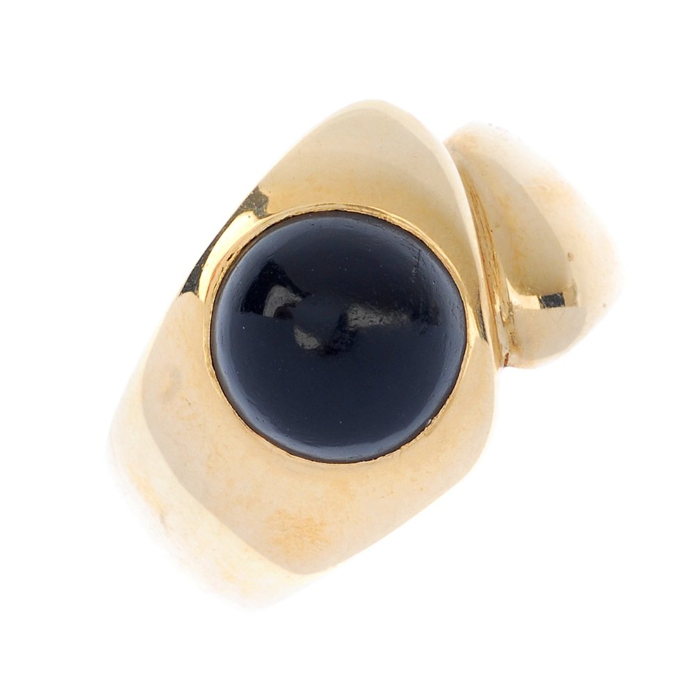 An onyx single-stone ring.