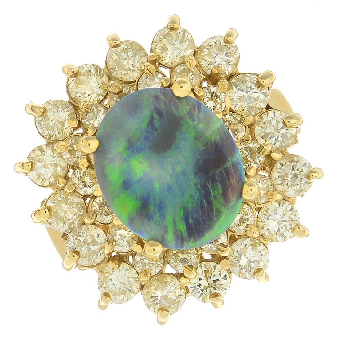 OVAL CABOCHON CUT OPAL & DIAMOND CLUSTER RING