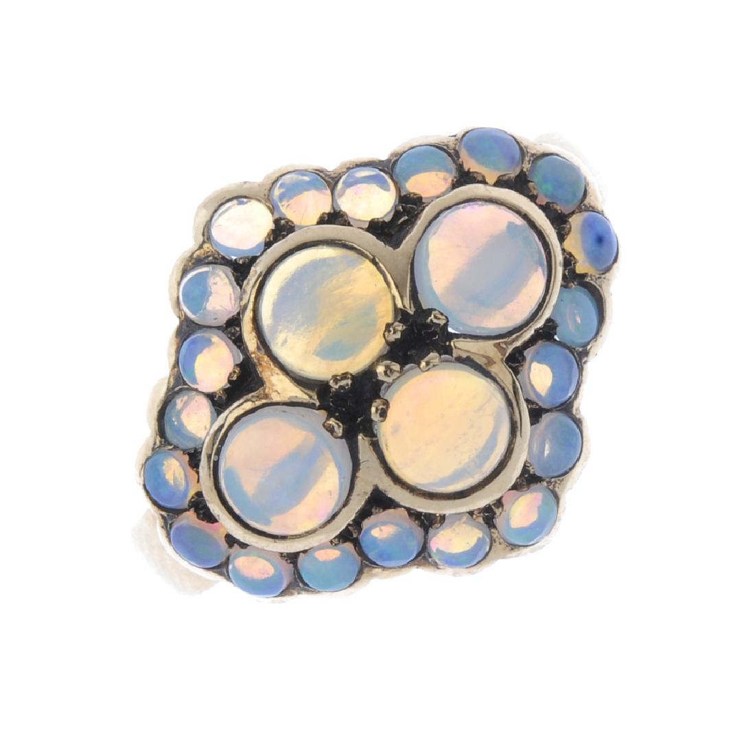 An opal cluster ring. The circular-shape opal cabochon