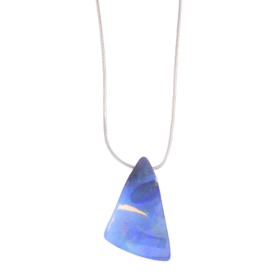 An opal pendant. The triangular outline opal,