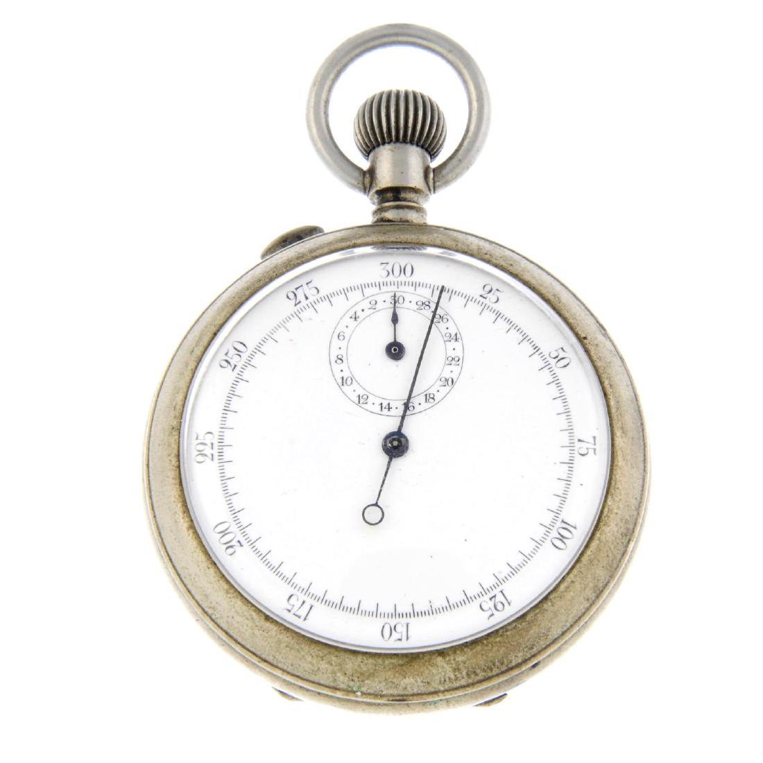 An open face stop watch. Base metal case. Numbered