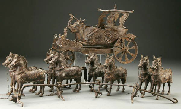 Large Porcelain Figural Carriage Lamp on Metal Base7 days LeftModel of 2-horse hitch with 3-seat dog cartMar 27, 2026BRONZE CUO GOLD AND SILVER CHARIOT FIGURES OF THE QIN DYNASTYFeb 27, 2026A Han Dynasty copper gold and silver horse-drawn carriageMar 07, 202614/15thC Indonesian Hindu Bronze People in Chariot Led By Horses. Wonderful!Mar 05, 202614/15thC/later Indonesia or Java Bronze Cart- Buddhist/HinduMar 05, 2026A Han Dynasty copper cuo gold and silver horse-drawn carriageMar 07, 2026A piece of Han Dynasty bronze - horse-drawn cartMar 07, 2026Chinese Four Horses and CarriageFeb 28, 2026Vintage Boho Brass Caravan Temple Toys Pair with Moveable WheelsMar 01, 2026An Exquisite Gilt Bronze Dragon and Phoenix Pattern CarriageMar 07, 2026Pre-Ming Dynasty Set of Gilt Bronze and Jade Inlaid Camel CartFeb 28, 2026An Exquisite Bronze Inlaid Gold Chi-Dragon Pattern With Inscription Ox cart OrnamentMar 04, 2026An Exquisite Gilt Bronze Inlaid Gems Dragon and Phoenix Pattern Carriage OrnamentFeb 27, 2026A set of pure copper from the Tang Dynasty is handmade with gilt gold horse-drawn carriagesMar 07, 2026A BRASS HORSE AND RIDER TEMPLE TOY, INDIA, 19TH CENTURYMar 06, 2026