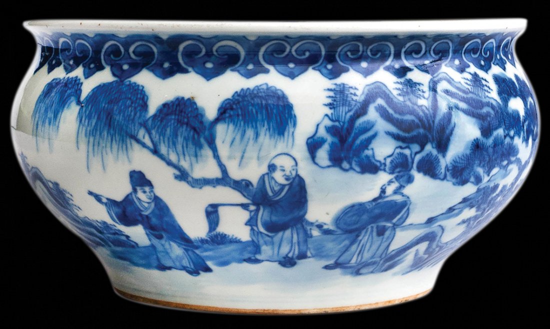 A Chinese Blue and White Porcelain Bowl with Figural Scenes