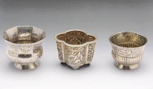 Chinese silversmith. Two small goblets richly decorated in relief with flowers and ornaments.Chairish Auctions4.5(10.4k)$120