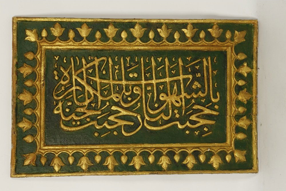 AN OTTOMAN CALLIGRAPHIC PANEL, the central area with a