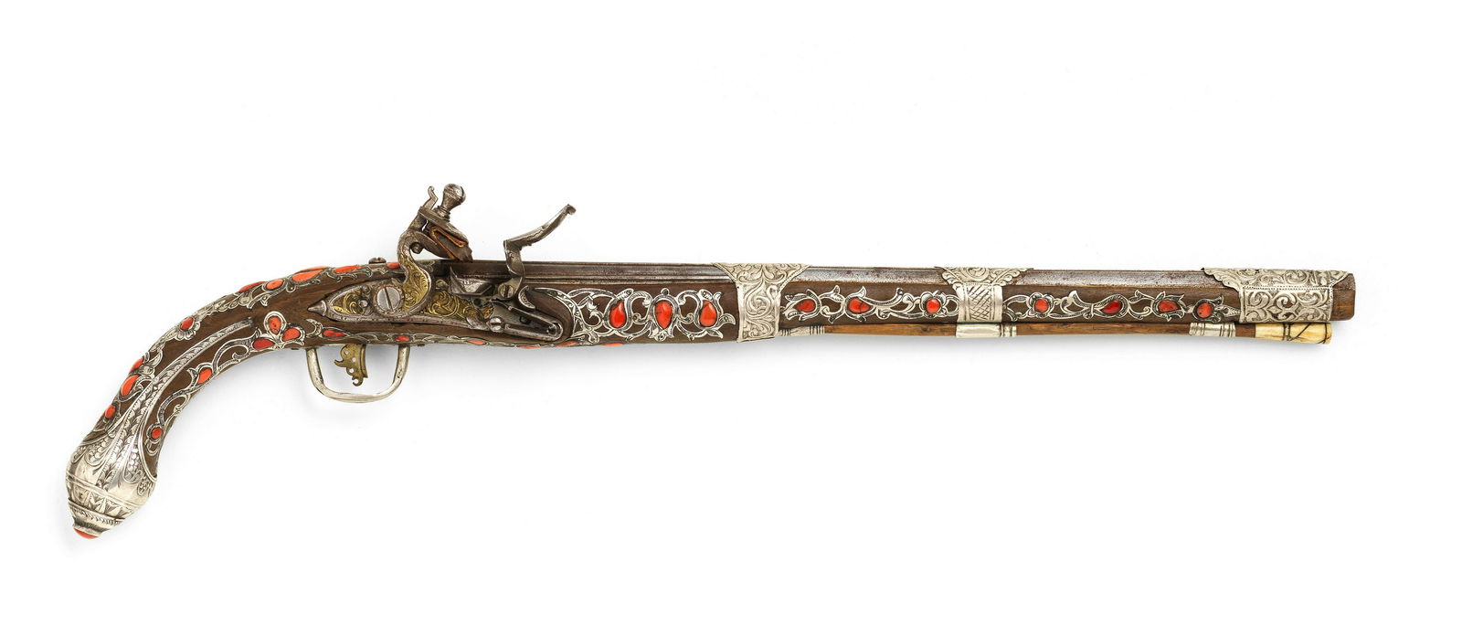 An Ottoman coral-inlaid flintlock holster pistol Algeria, 18th Century