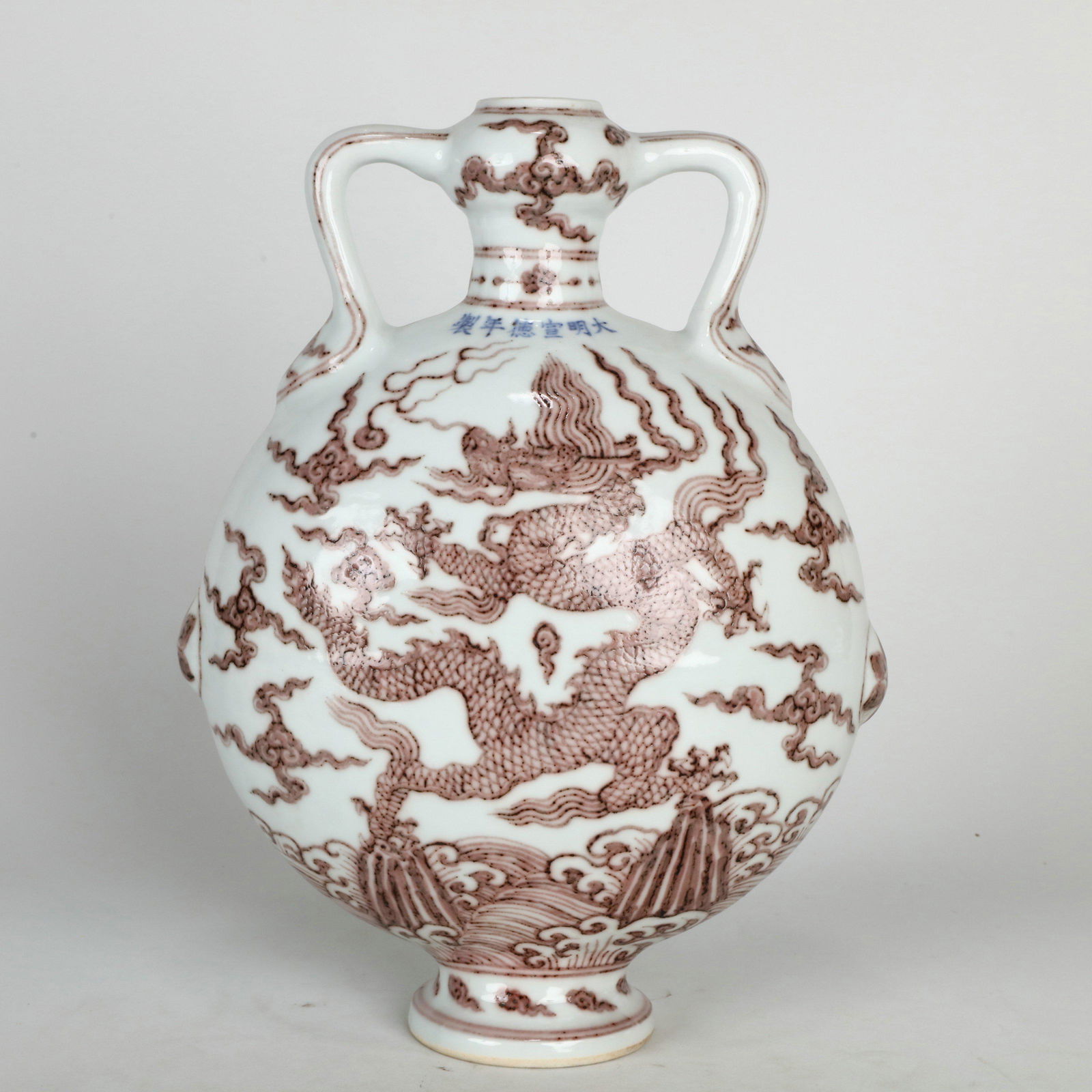 An Underglaze Red Flat Bottle with Dragon Pattern