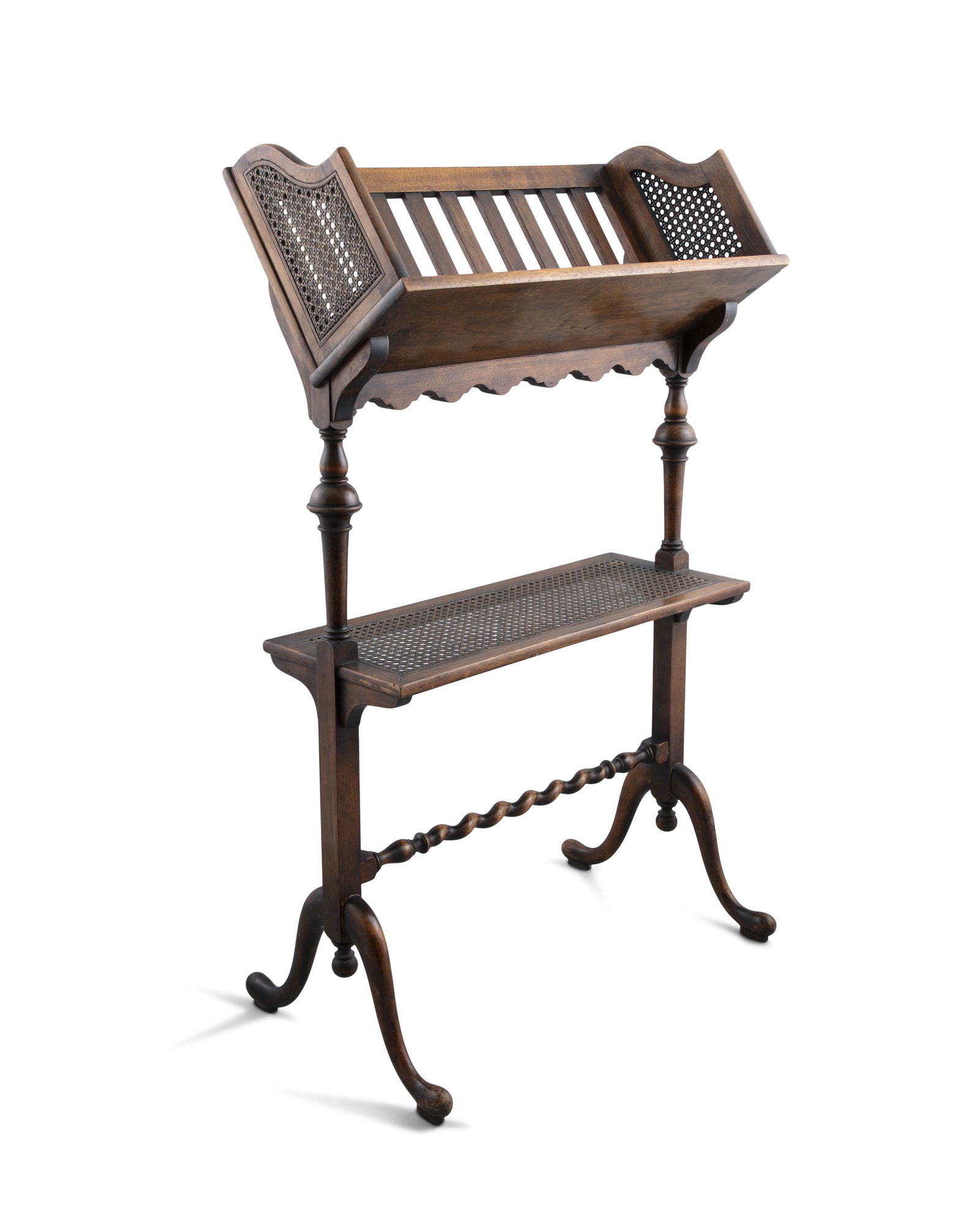 AN UNUSUAL BEECHWOOD AND CANEWORK READING/FOLIO STAND,