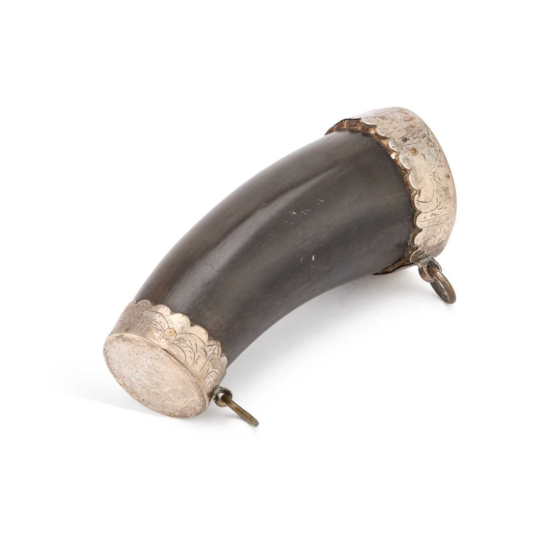 AN UNUSUAL SILVER-MOUNTED HORN BEAKER