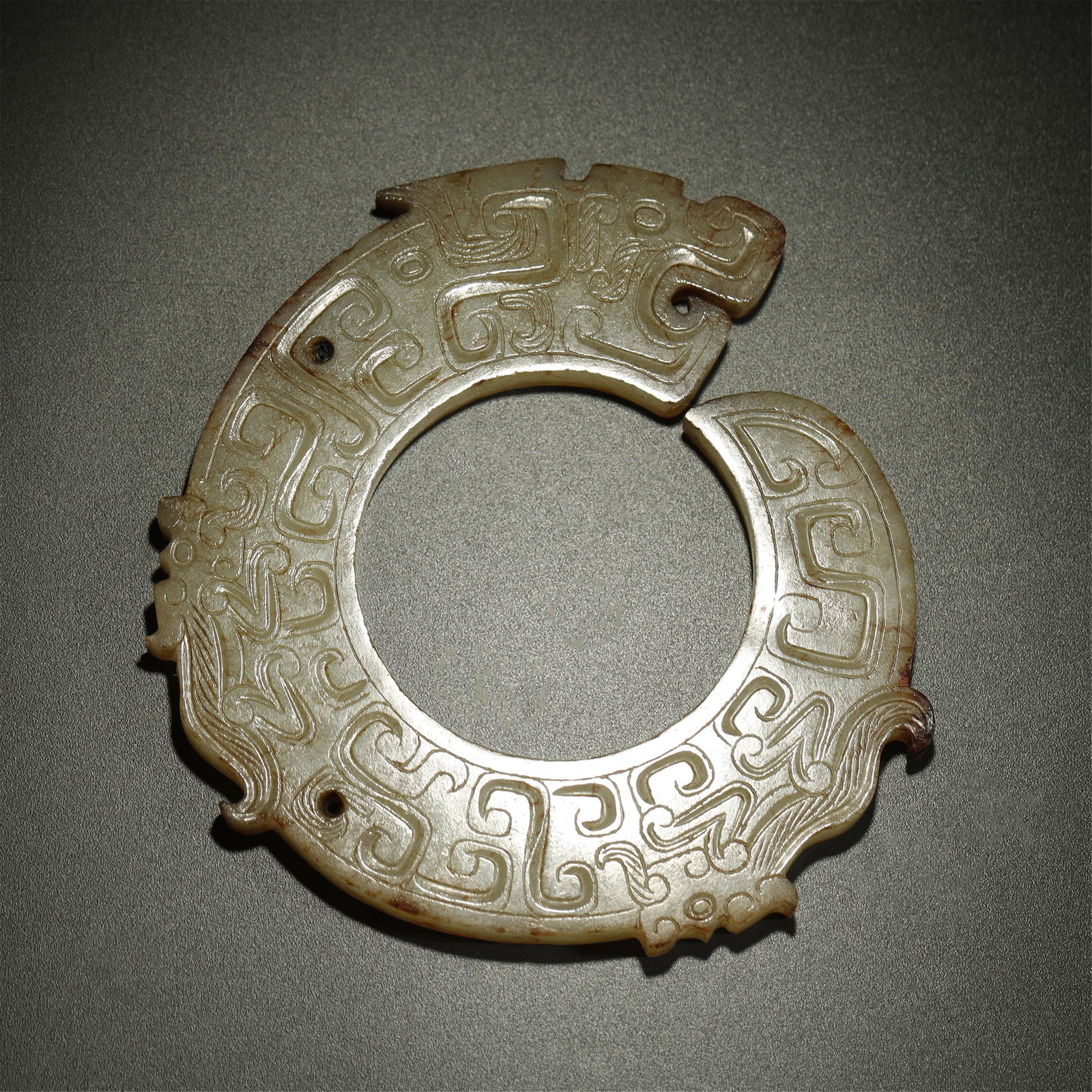 SoldA Rare and Fine Chinese Jade dragonpendantWarring States period, 5th-3rd B.C. Carved S-shape dragon and ancient pattern on bodySee Sold Price