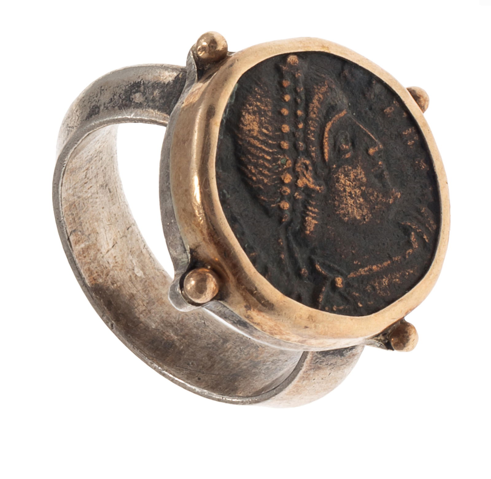 Ancient Coin, 14k, Sterling Silver Ring