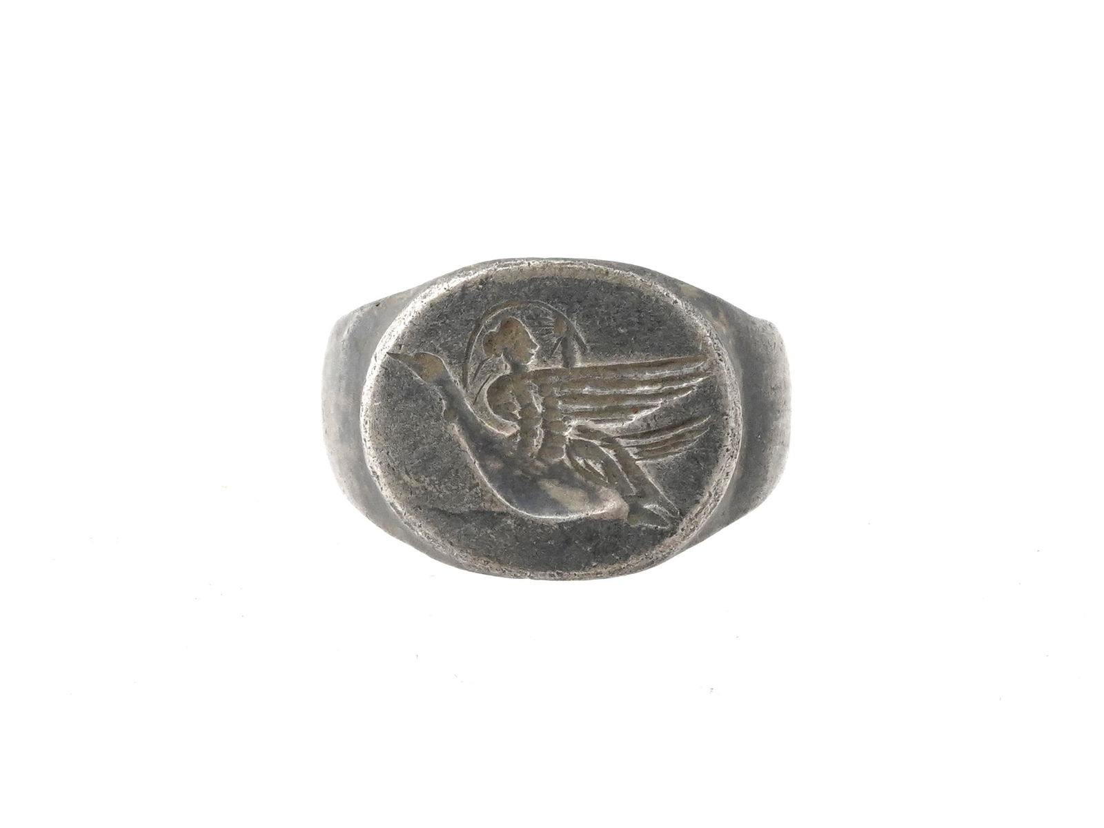 ANCIENT ENGRAVED SILVER SIGNET RING WITH APHRODITE