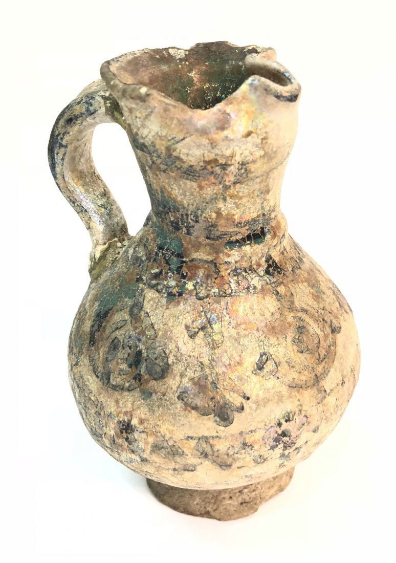 Ancient PERSIAN Ceramic FOOTED JUG With iridescent