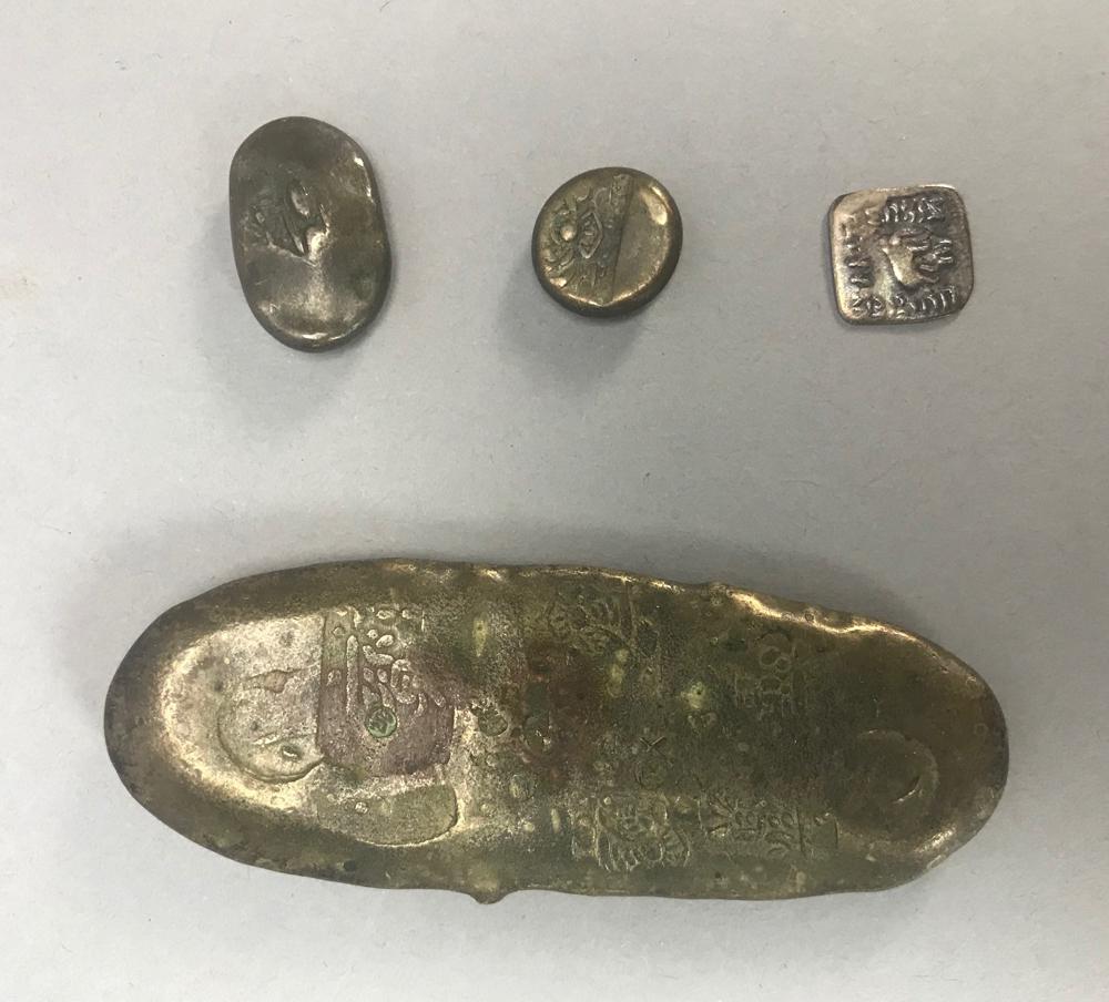 SoldIran: Silver Coin AssortmentIran: Silver Coin Assortment (31) total items including (26) ancient Persian style coins; together with (2) 1 oz troy fine (0.999) silver bars as well as a braid motif open cuff bracelet, an oval filiSee Sold Price