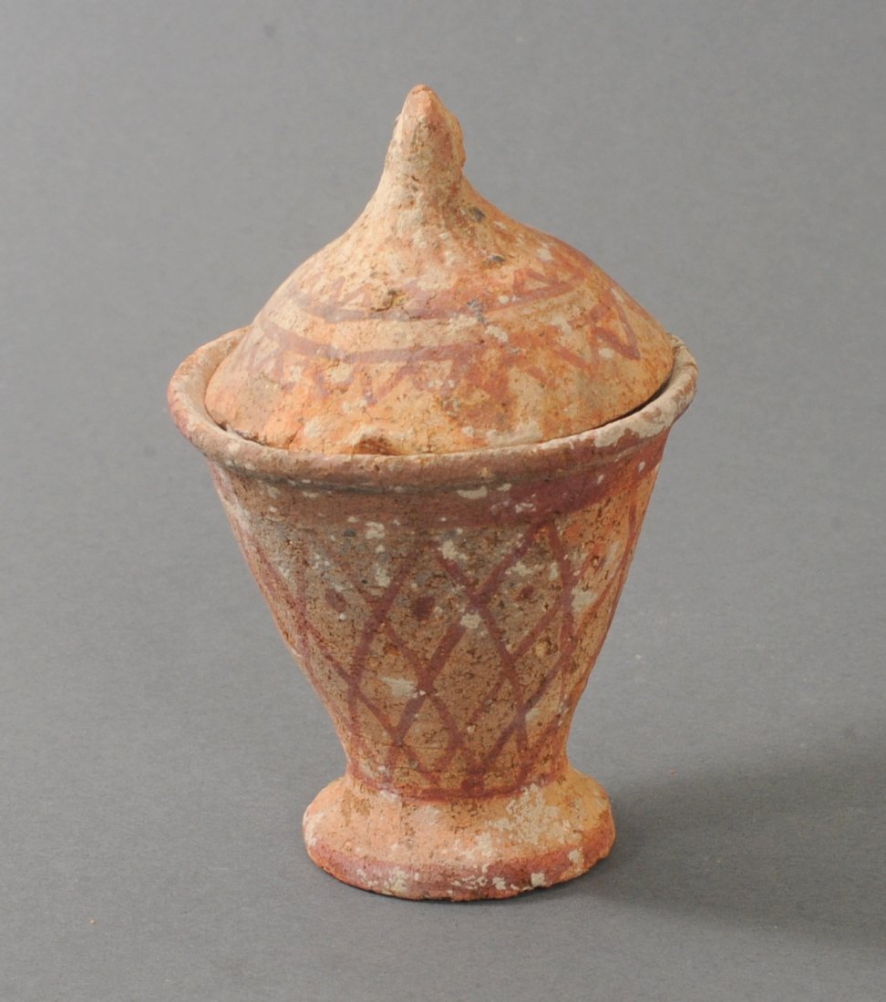 ANCIENT TERRACOTTA PYXIS WITH COVER
