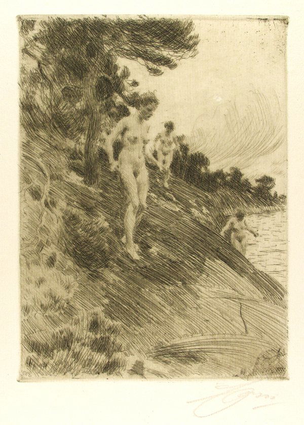 Anders Zorn, Frightened.-Etching.