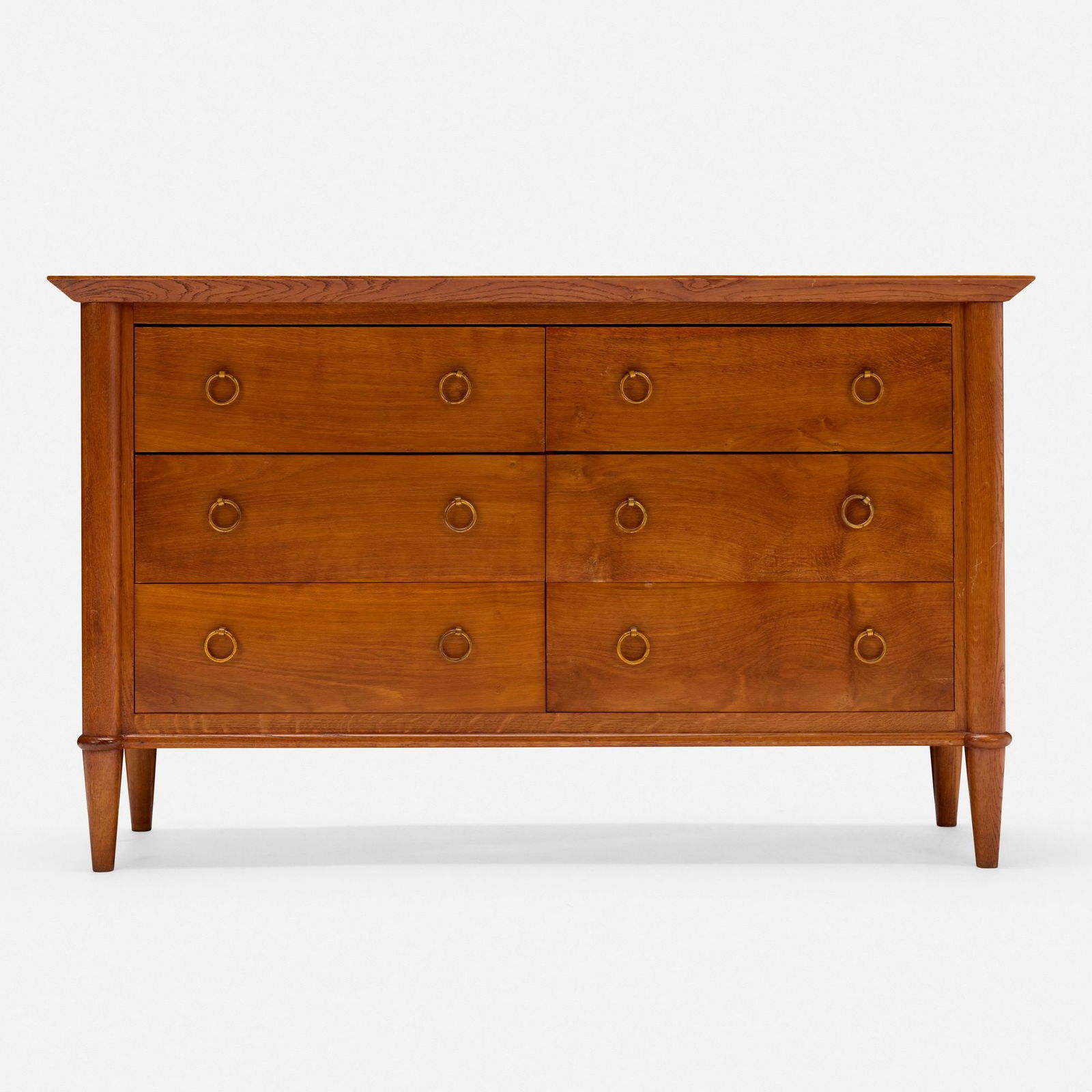 SoldAndre Arbus Style Blonde Oak 2-Door CabinetAndre Arbus Style Blonde Oak Two-Door Cabinet, with four brass pulls and one interior shelf, Baker plaque label to reverse. 37" H x 43.5" W x 16.75" D. Provenance: From a New York City Collection. KeySee Sold Price