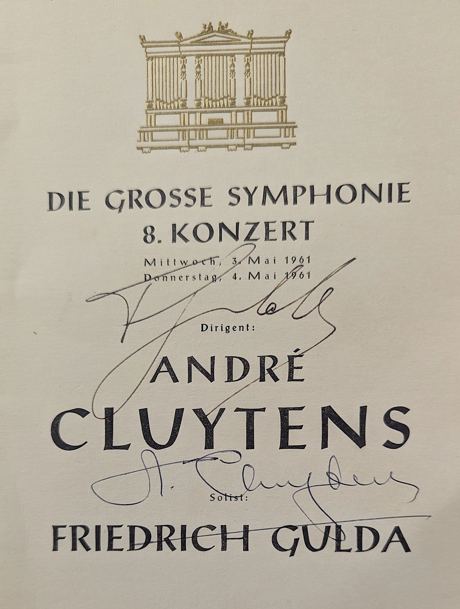 ANDRE CLUYTENS - Friedrich Gulda - Signed Program 1961