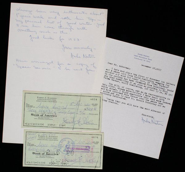 Andre Norton Forrest Ackerman letters & checks