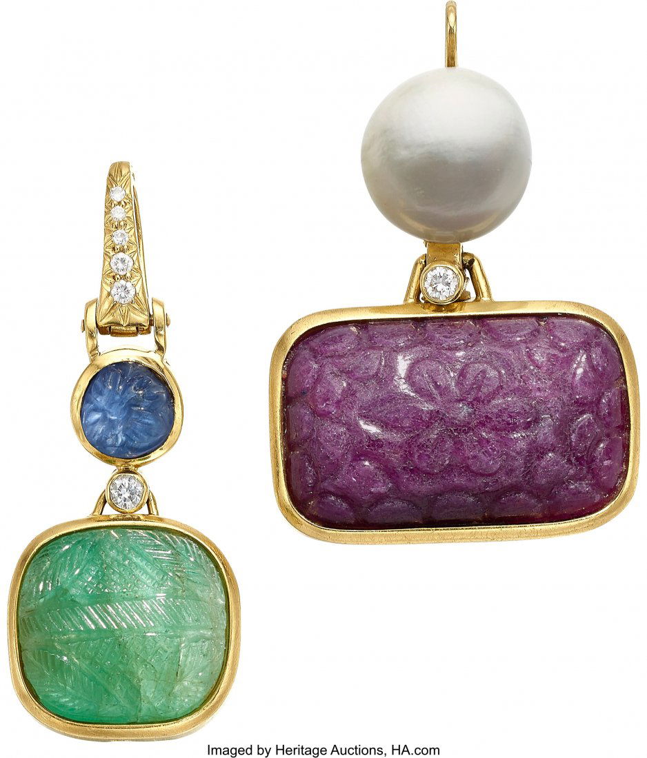 Earrings - 18 kt. Yellow gold, Exclusive 18K Yellow Gold 1.00ct Diamond, Emerald & Ruby LargeEastern European Art Gallery Inc$500Mar 14, 2026