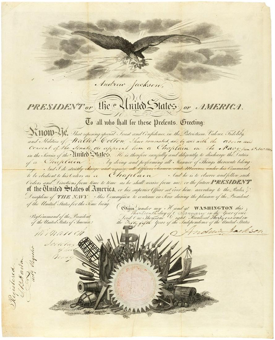 ANDREW JACKSON NAVY CHAPLIN COMMISSION DOCUMENT SIGNED