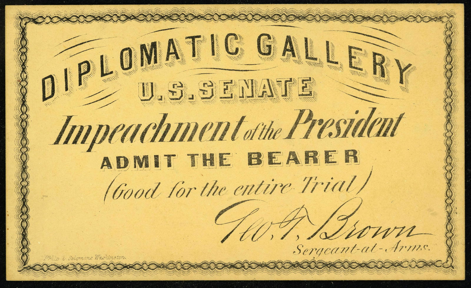 ANDREW JOHNSON "DIPLOMATIC GALLERY" IMPEACHMENT TICKET